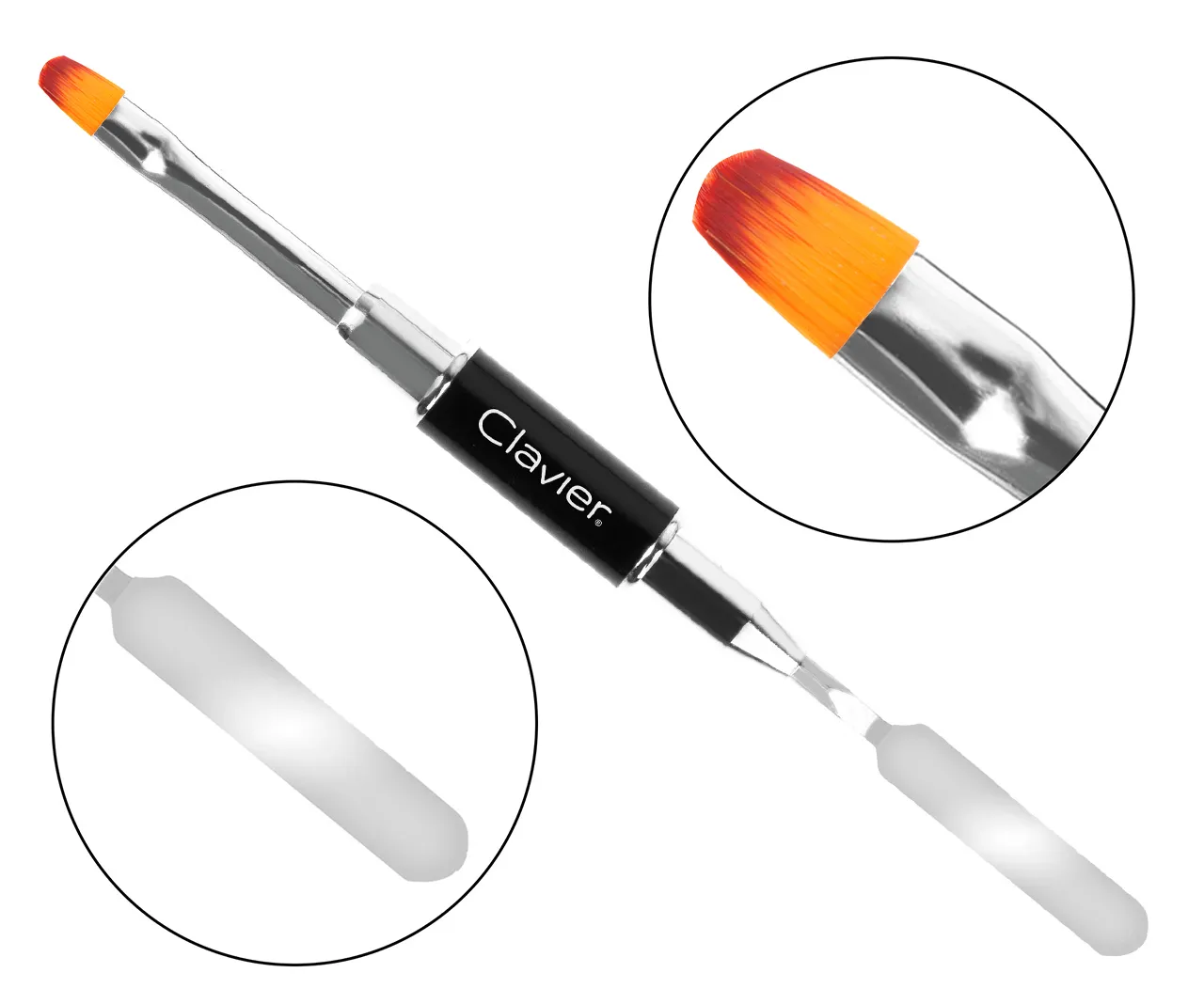 Dwustronny pędzelek z łopatką do akrylożelu, żelu, akryli. Z jednej strony przyrząd zakończony jest metalową szpatułką, którą możemy w łatwy i szybki sposób nabrać odpowiednią ilość wybranego przez nas żelu czy akrylu oraz nałożyć go na paznokieć.