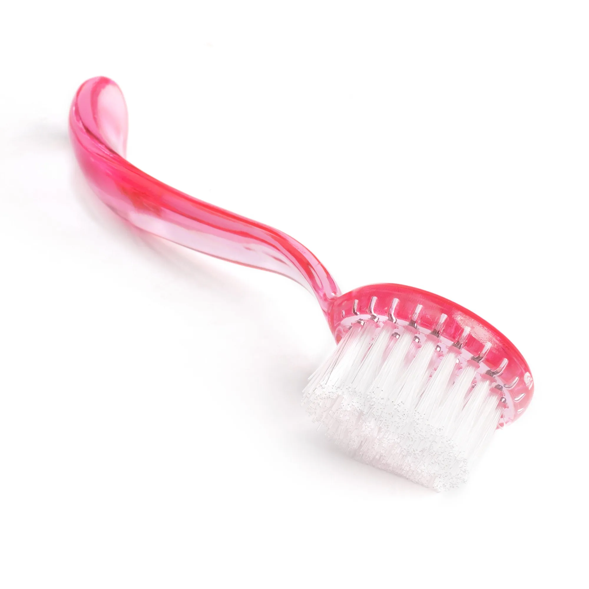Szczoteczka do paznokci i pyłu, okrągła z rączką – różowa